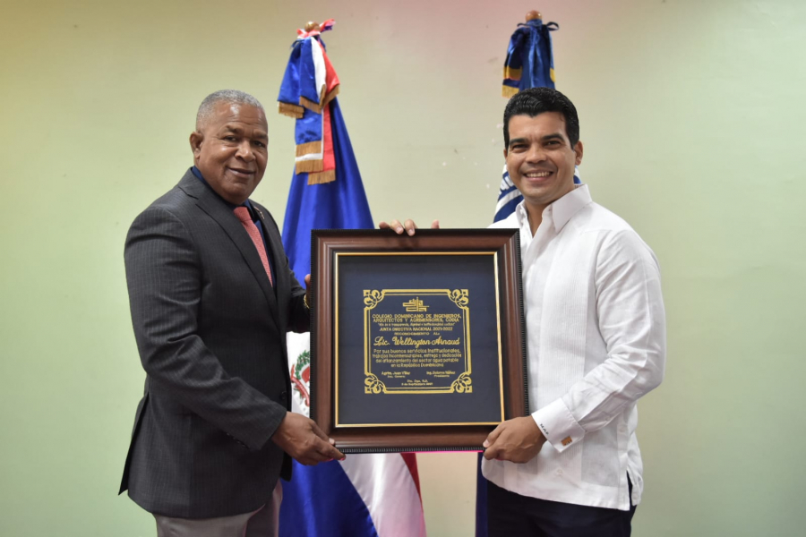 Santo Domingo.-El director ejecutivo del Instituto Nacional de Aguas Potables y Alcantarillados (INAPA), Wellington Arnaud, recibió una placa de reconocimiento por parte de la nueva directiva del Colegio Dominicano de Ingenieros , Arquitectos y Agrimensores (CODIA ), por su trabajo, entrega y dedicación en favor del sector agua potable.