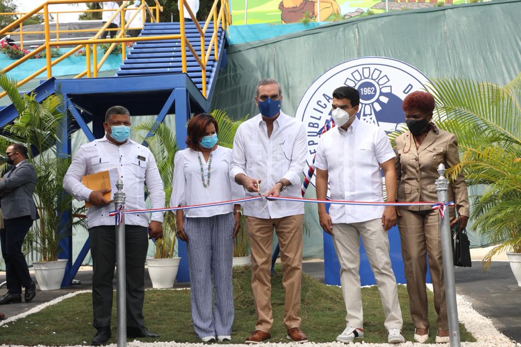 El presidente Abinader junto al director del INAPA, realizó el corte de cinta y la apertura de la llave que deja oficialmente en funcionamiento la planta potabilizadora Guanuma-Los Botados. Finalmente, el mandatario hizo un recorrido por las instalaciones.