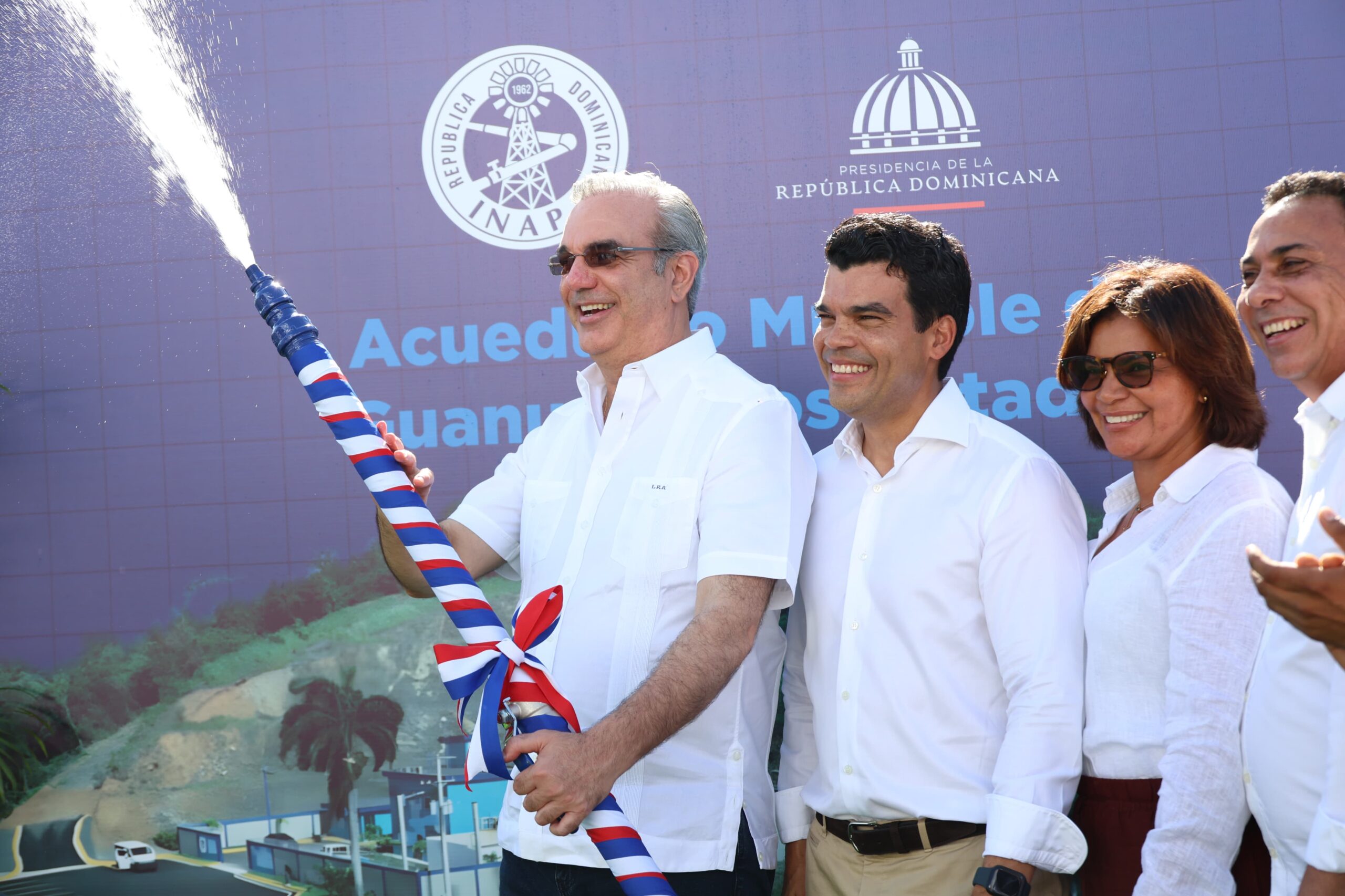 Monte Plata. – El presidente Luis Abinader y Wellington Arnaud, director ejecutivo del Instituto Nacional de Aguas Potables y Alcantarillados (INAPA), inauguraron el Acueducto Múltiple Guanuma-Los Botados, provincia Monte Plata, que garantizará el servicio de agua, en cantidad, calidad y presión, a los residentes de la demarcación.