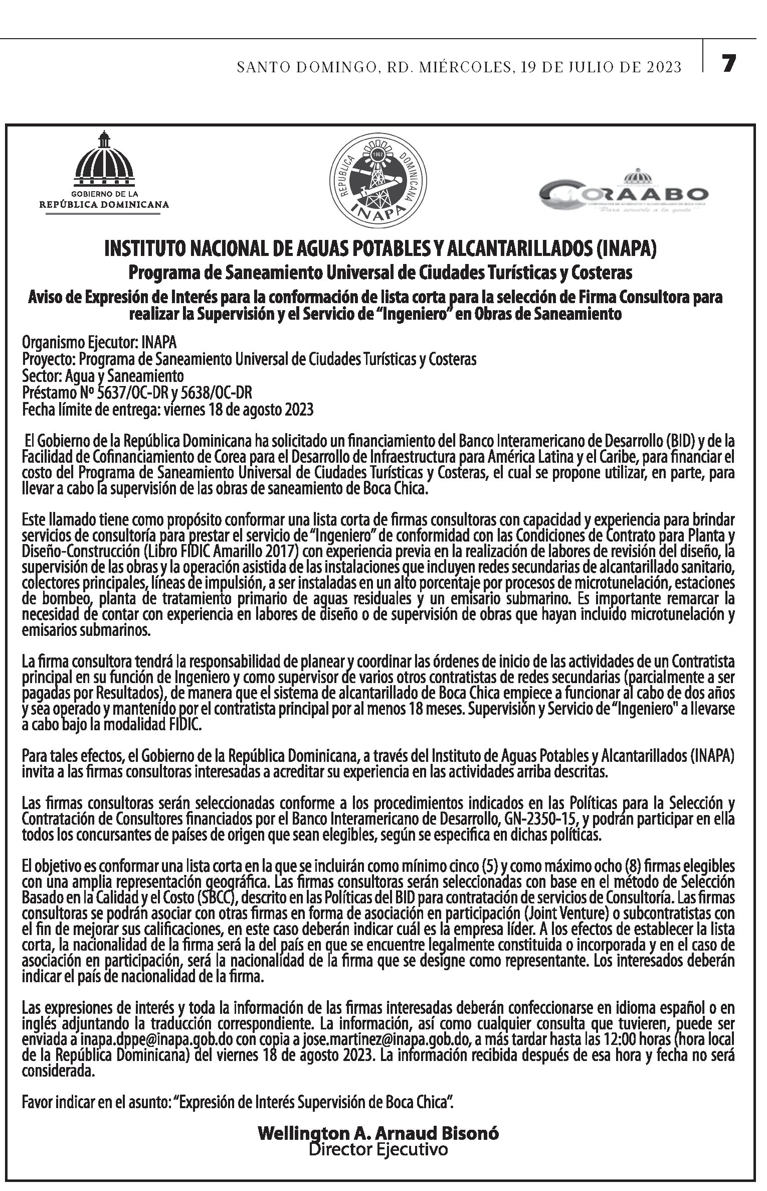 Trminos de Referencia Contratacin Consultora Supervisin Obras Saneamiento Boca Chica
